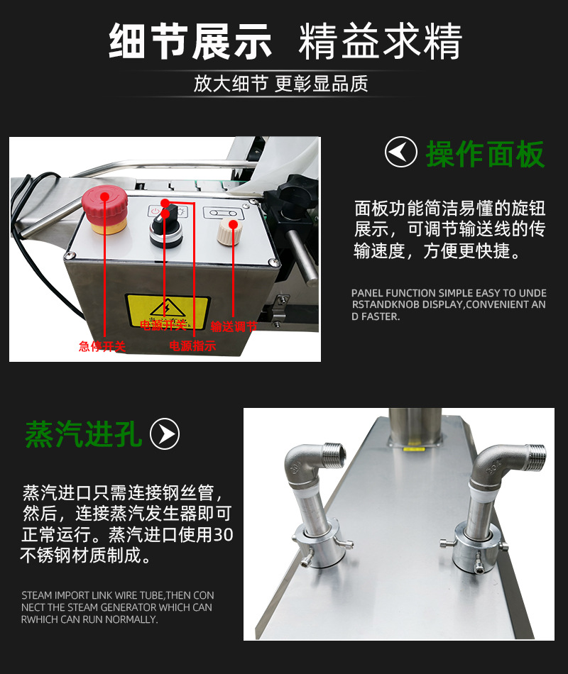 - 簡單的操作流程:蒸汽收縮機的操作相對簡單。一般通過控制面板就可以輕松設置蒸汽溫度、傳送帶速度、蒸汽噴射時間等關鍵參數。操作人員不需要經過復雜的專業培訓就能上手操作。例如,在小型食品加工企業,普通工人在簡單學習后就能熟練操作蒸汽收縮機進行產品包裝。