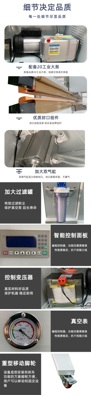 立式外抽真空包裝機(jī)抽氣不充分可能由設(shè)備本身部件、包裝材料及操作等多方面原因造成,以下是具體介紹: