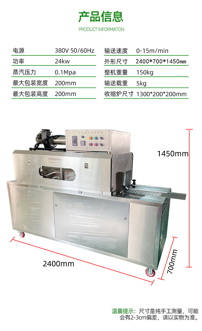 - PVC:在高溫下可能會(huì)釋放出有害物質(zhì),且其耐溫性有限,一般在 80℃ - 100℃左右,使用蒸汽收縮機(jī)時(shí)需嚴(yán)格控制溫度,否則可能導(dǎo)致收縮膜變形、變色甚至損壞產(chǎn)品。