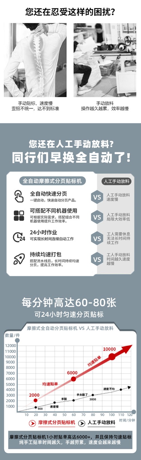 高速度作業:貼標速度超過每分鐘 100 張,能滿足大批量生產需求,極大提高生產效率。