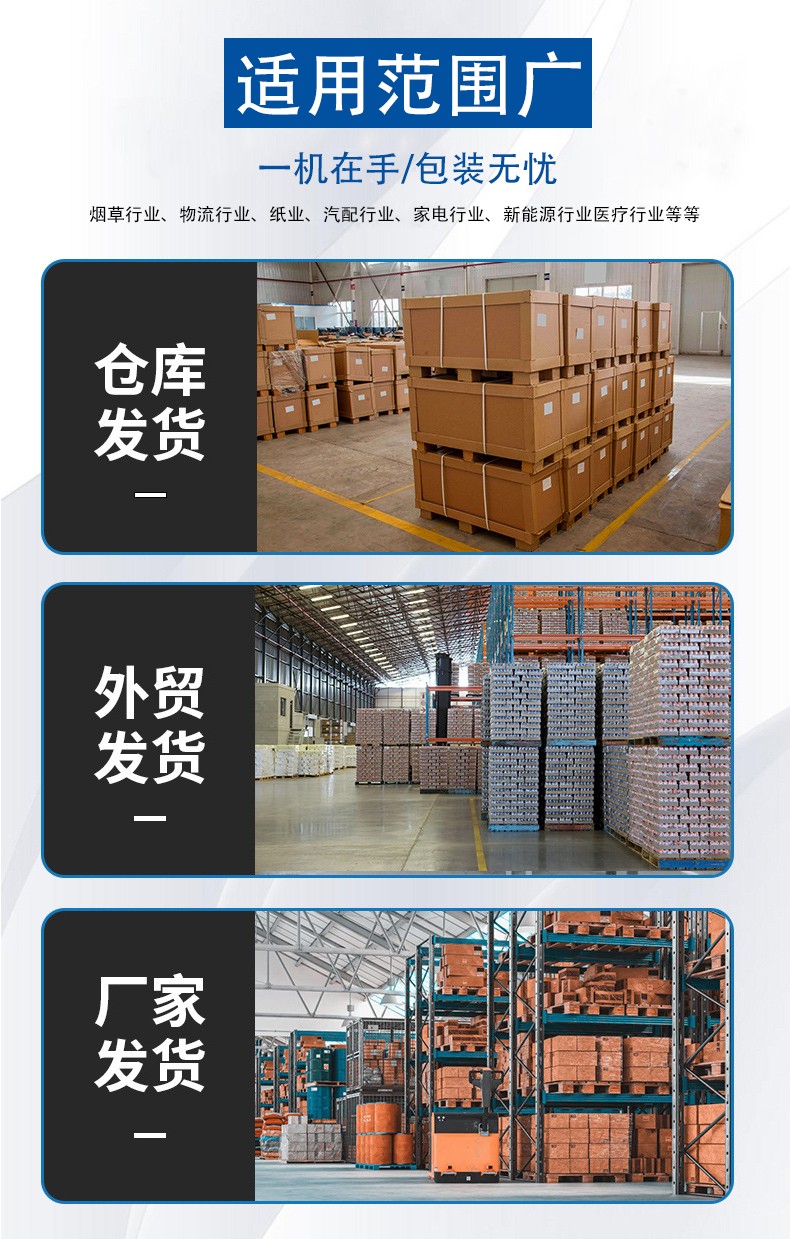 - 智能收緊:根據貨物類型(如紙箱、金屬件)自動調節束緊力(常規范圍 200-5000N),確保帶子緊貼貨物但不壓損,部分重型機型束緊力可達 9000N 以上,適配建材、鑄件等重物。