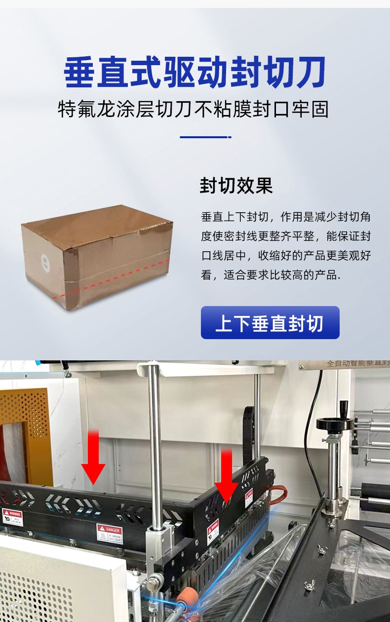 全自動垂直封切熱收縮包裝機憑借高效自動化、封口平整、適用范圍廣的特點,適配多行業的產品包裝需求,尤其適合需要批量包裝、追求外觀整潔或需防潮防塵防護的物品。垂直封切上下驅動,封口均勻無折皺,適合高度方向尺寸大的產品;L 型封切效率更高,適合扁平小件批量包裝。
