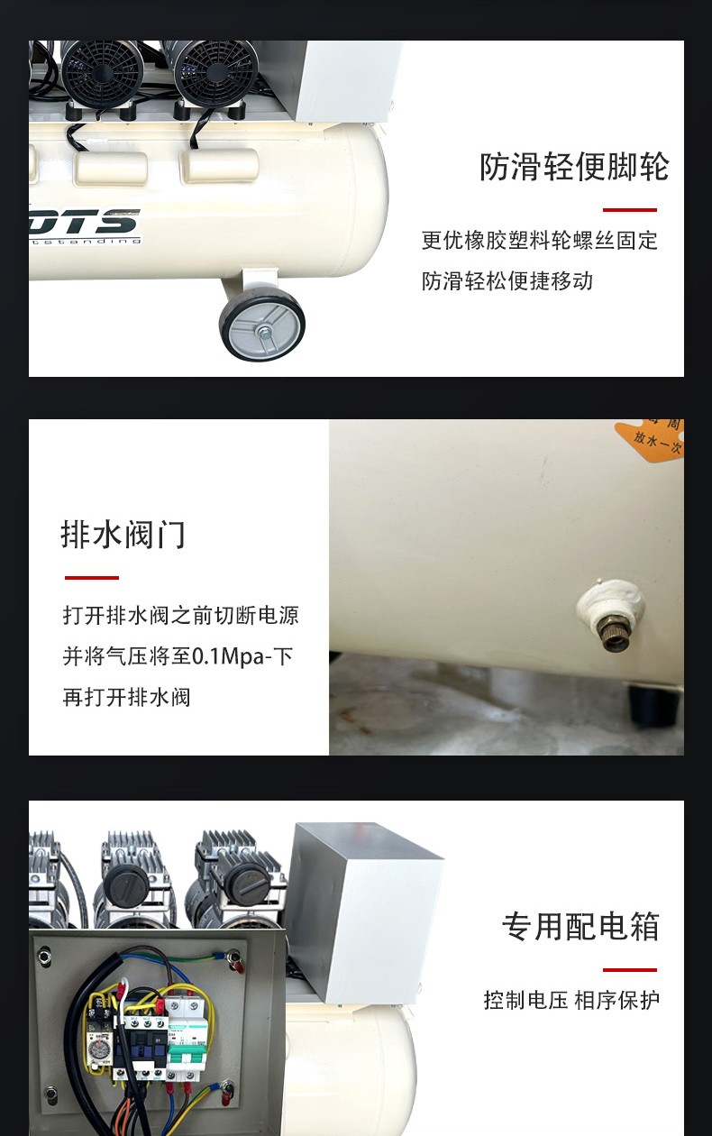 無(wú)油空氣壓縮機(jī)主要有活塞式、螺桿式和離心式三種類型,其工作原理各有不同,具體如下:
