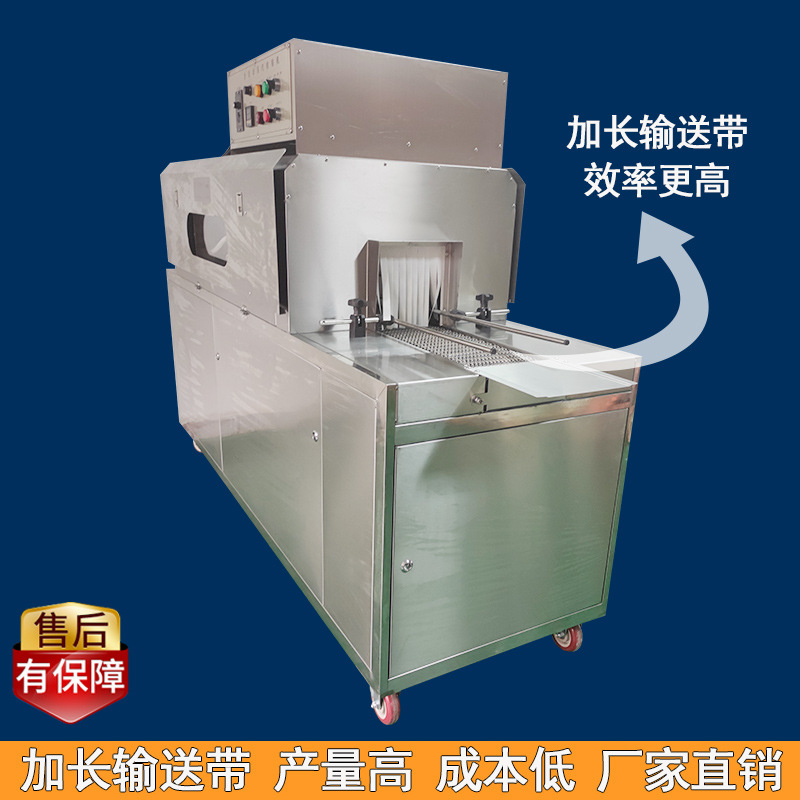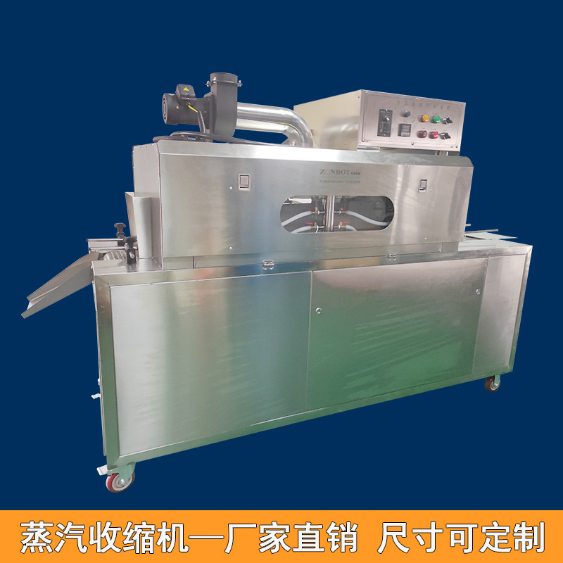 收縮階段:包裝好的產(chǎn)品接著被輸送到蒸汽收縮部分的收縮通道入口。此時,蒸汽發(fā)生系統(tǒng)已經(jīng)產(chǎn)生了合適的蒸汽,蒸汽通過噴頭均勻地噴灑在產(chǎn)品的包裝薄膜上。包裝薄膜在蒸汽的熱量作用下開始收縮,緊密貼合在產(chǎn)品表面。產(chǎn)品在輸送系統(tǒng)的推動下繼續(xù)在收縮通道內(nèi)移動,保證薄膜各個部分都能充分收縮。收縮完成后,通風(fēng)口排出蒸汽,產(chǎn)品在外界環(huán)境下冷卻定型,最終完成蒸汽收縮包裝,從出口輸送帶送出一體機(jī)。