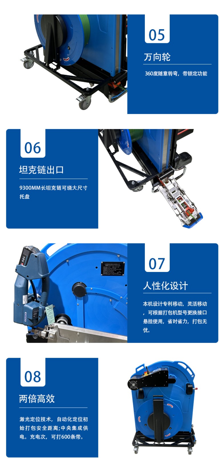 - 導向系統(tǒng):由多個導向輪和導軌組成。導向輪一般是可以靈活轉(zhuǎn)動的滾輪,它們可以根據(jù)打包帶的寬度和穿帶路徑進行調(diào)整。導軌則是為打包帶提供了一個固定的通道,確保打包帶沿著預定的路線行進。比如,當打包帶需要轉(zhuǎn)彎時,導向輪會將其引導到合適的軌道上。