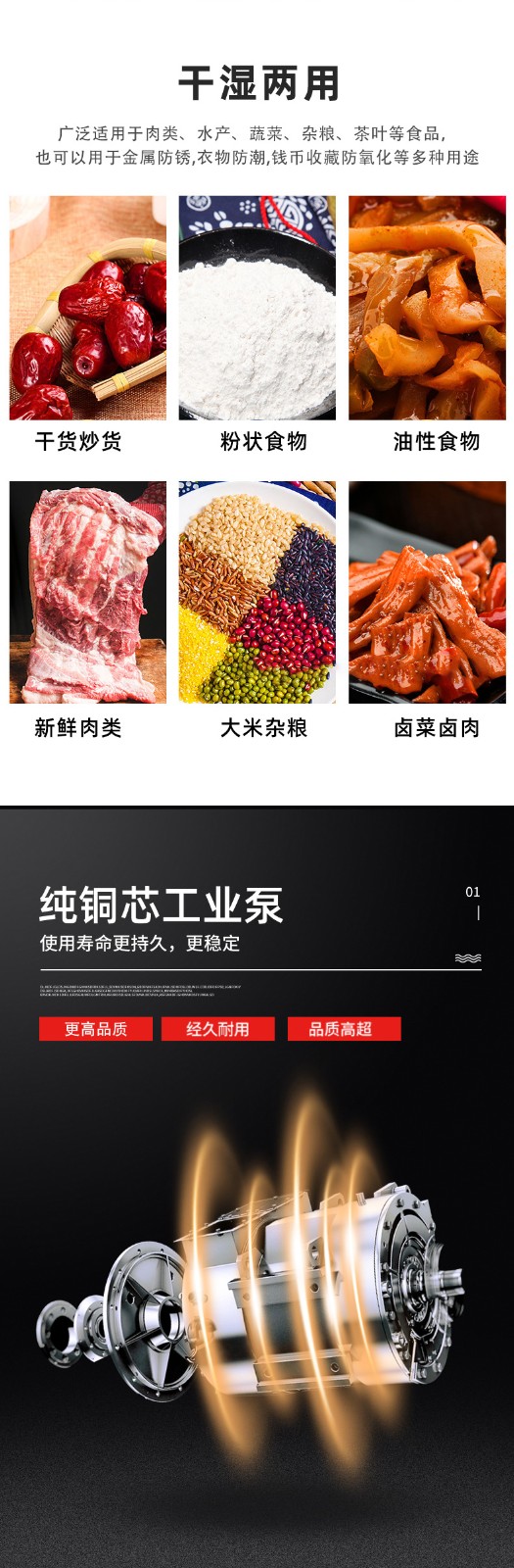 - 真空室:通常由不銹鋼制成,具有兩個對稱的工作室,可同時進行真空包裝操作,提高工作效率。工作室底部為平板狀,便于放置包裝物品,且易于清潔。