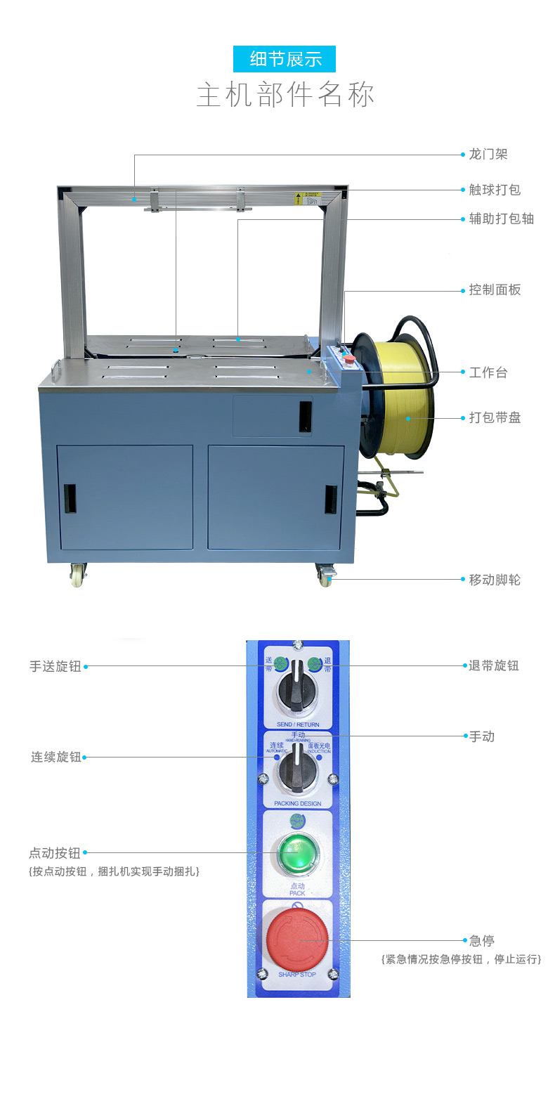 - 全自動(dòng)伺服打包機(jī)的控制系統(tǒng)是其核心部分,一般采用先進(jìn)的可編程邏輯控制器(PLC)或工業(yè)計(jì)算機(jī)進(jìn)行控制。通過編寫特定的程序,能夠精確地控制各個(gè)部件的動(dòng)作順序、速度和時(shí)間等參數(shù)。操作面板通常采用觸摸屏設(shè)計(jì),界面友好,易于操作。操作人員可以通過觸摸屏輕松地設(shè)置打包帶的長(zhǎng)度、捆扎力度、打包速度等參數(shù),還可以實(shí)時(shí)查看機(jī)器的運(yùn)行狀態(tài)、故障信息等。此外,一些高端的全自動(dòng)伺服打包機(jī)還支持遠(yuǎn)程監(jiān)控和數(shù)據(jù)傳輸功能,管理人員可以通過網(wǎng)絡(luò)遠(yuǎn)程對(duì)機(jī)器進(jìn)行監(jiān)控和管理,方便生產(chǎn)調(diào)度和故障排除。